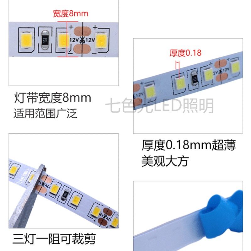 LED灯带12V2835裸板120珠窄板自粘8毫米贴片单色高亮展示线条灯带 - 分竹居商城的小店26
