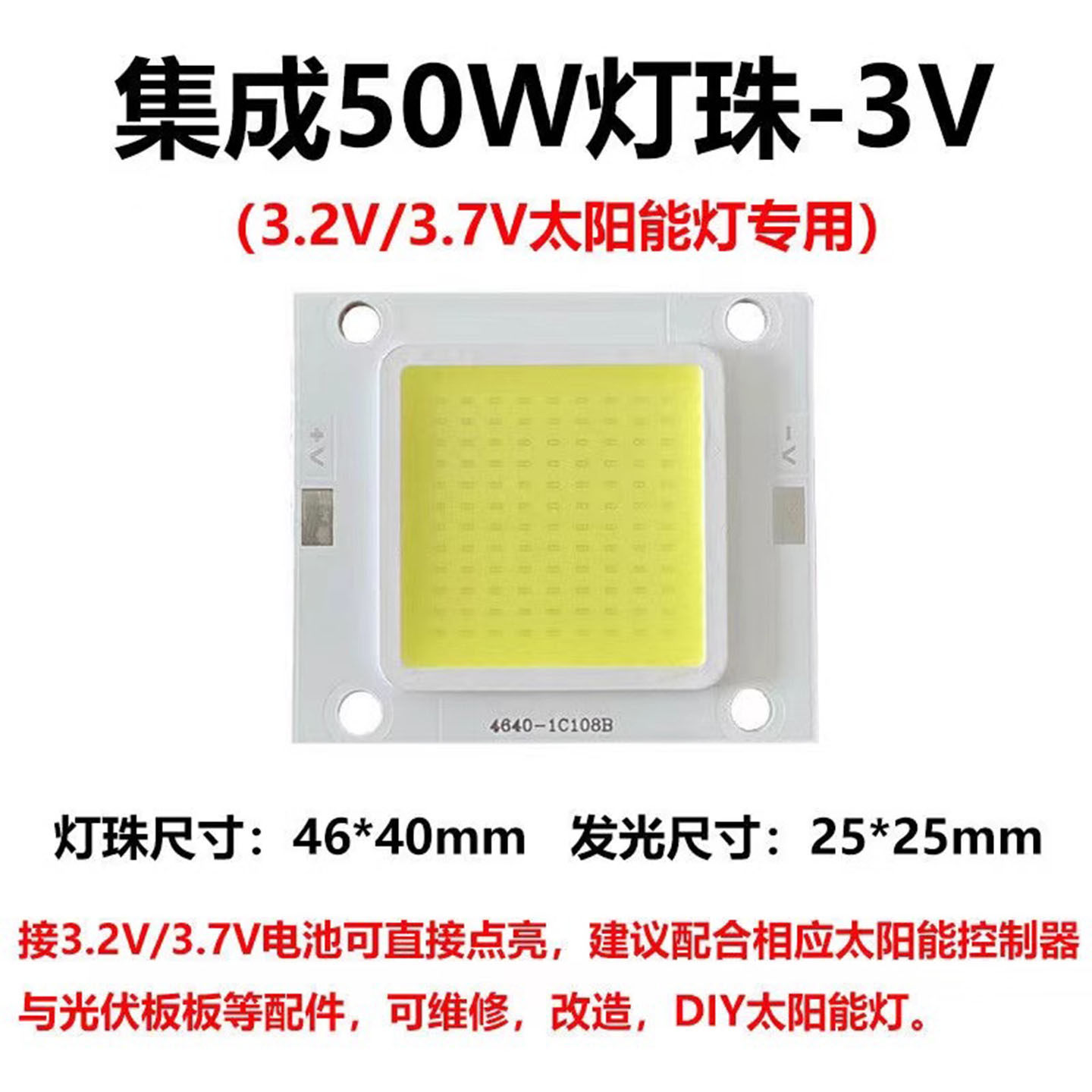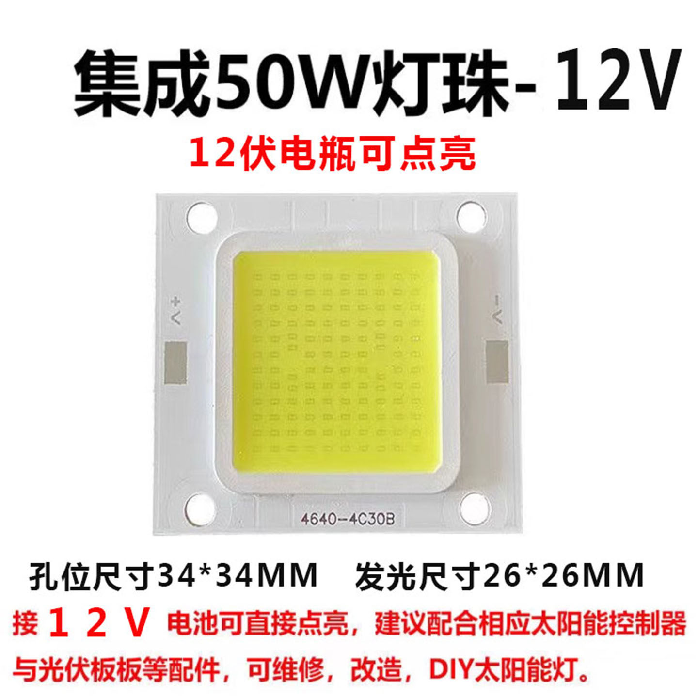 超亮led灯珠DC3.2V3.7V12VCOB50w集成灯芯太阳能路灯应急头灯芯片 - 亮再来照明