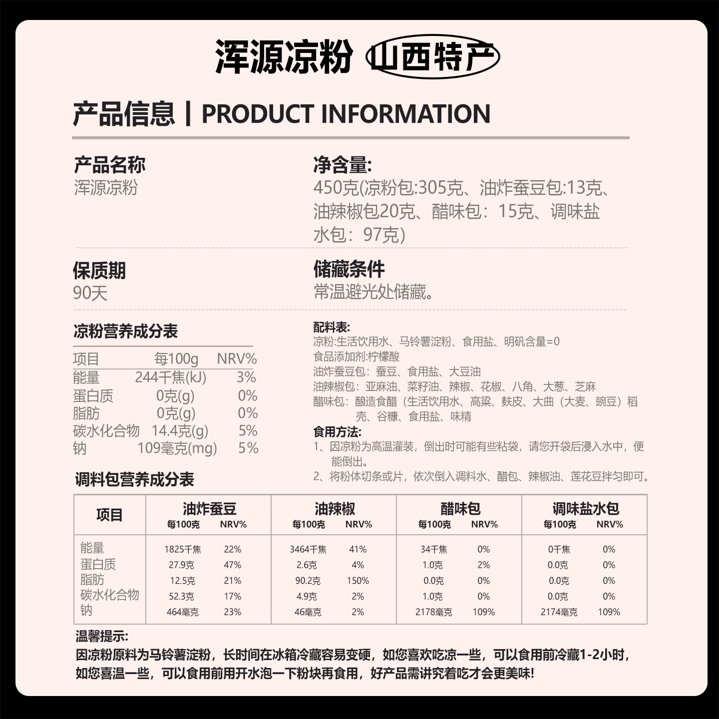 小高山西特产大同浑源凉粉凉皮袋装带调料包方便速食即食凉粉450g - 宁化府益源庆老陈醋