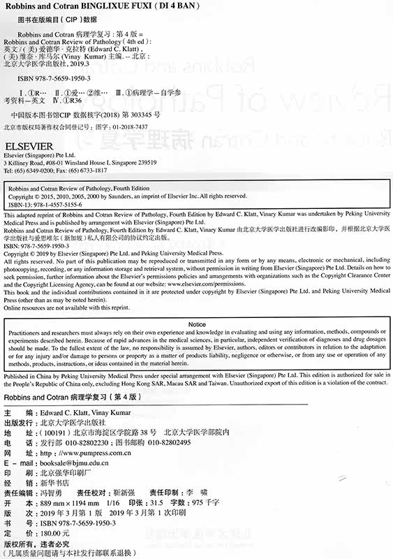 正版现货 Robbins and Cotran REVIEW OF PATHOLOGY 病理学复习 第4版 最新修订版(影印)北京大学医学出版社9787565919503 - 郑州曙光图书专营店