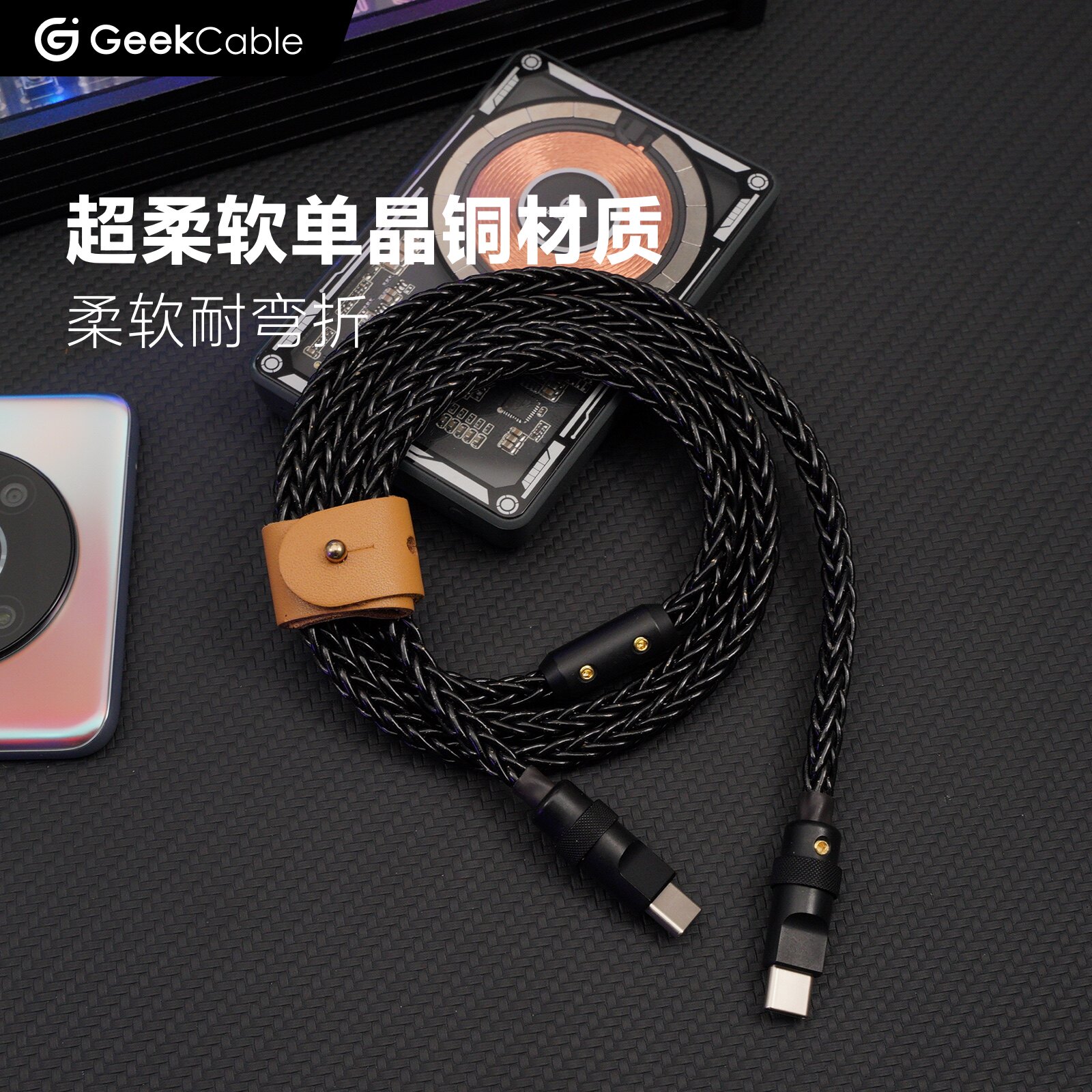 GeekCable单晶铜充电线适用于苹果三星手机笔记本电脑快充PD3.1充电240W数据线iPad武士黑黑五金 - GeekCable极客制化