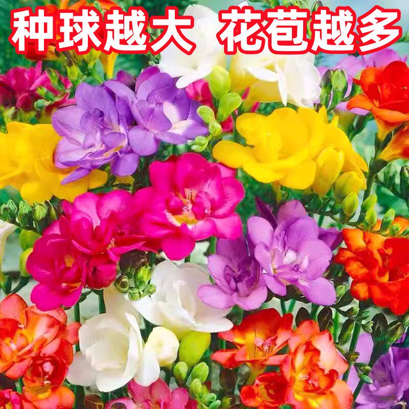 香雪兰种球四季播种小苍兰鲜花盆栽进口重瓣特大球带花苞种球混色 - 绿枝春旗舰店