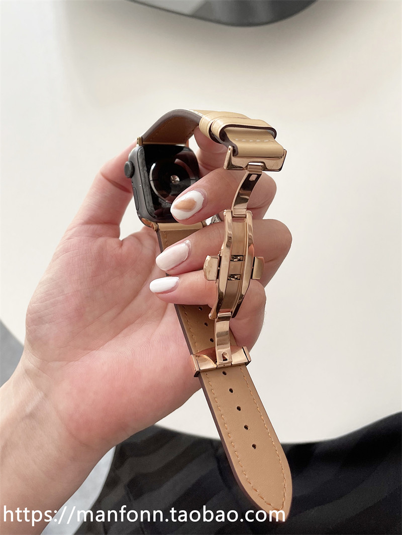 适用苹果手表iwatch10se表带applewatch9876腕带真皮质金属蝴蝶扣 - 满分代表 智能手表配件店
