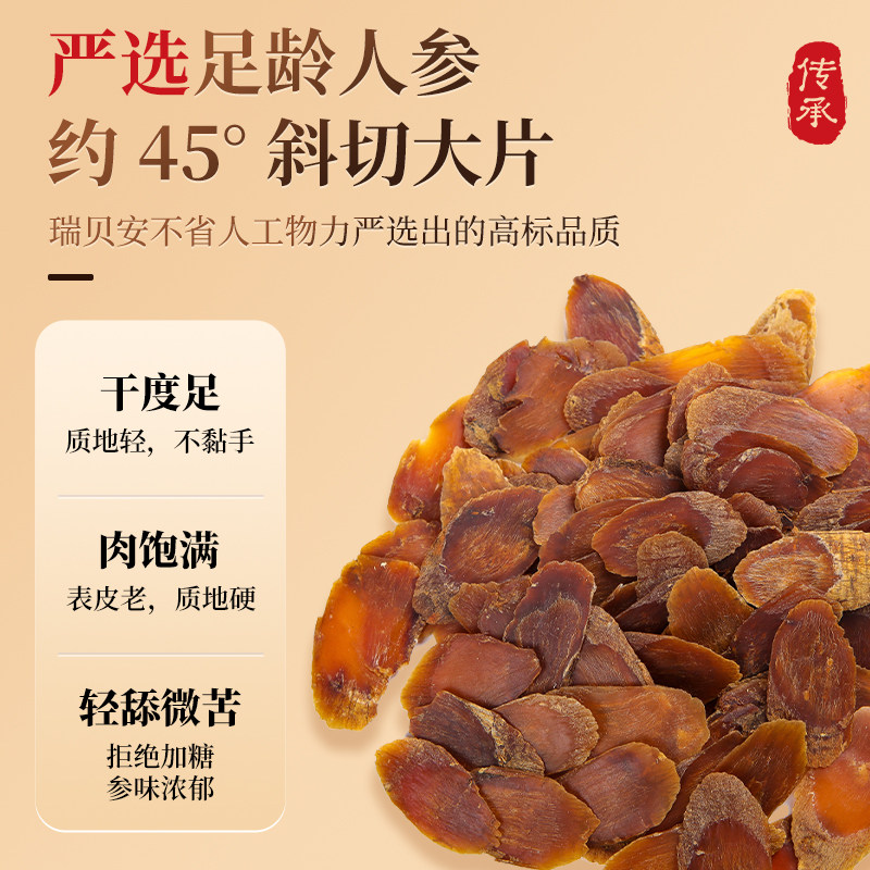 红参片人参片长白山原产高丽参段余脉正品官方旗舰店无糖整枝切片 - 瑞贝安匠心滋补养生旗舰店