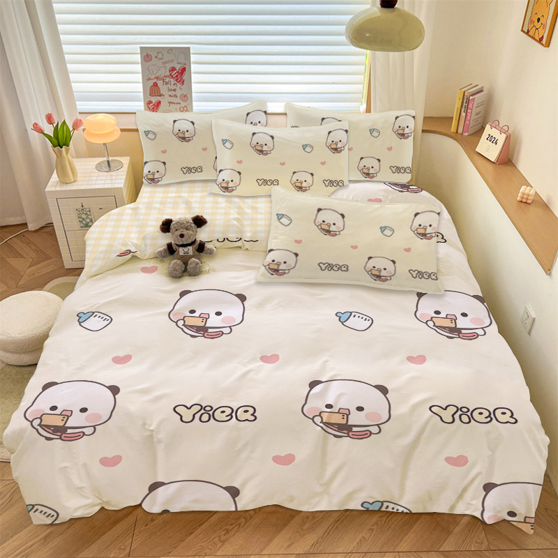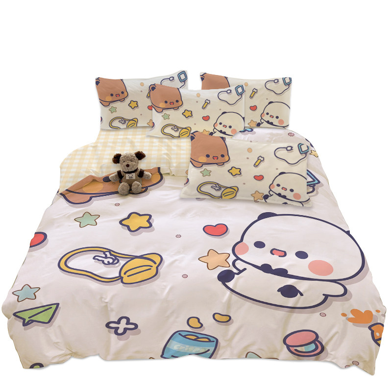 A类纯棉一二布布四件套可爱小熊全棉床单床笠被套卡通宿舍三件套 - 大商城