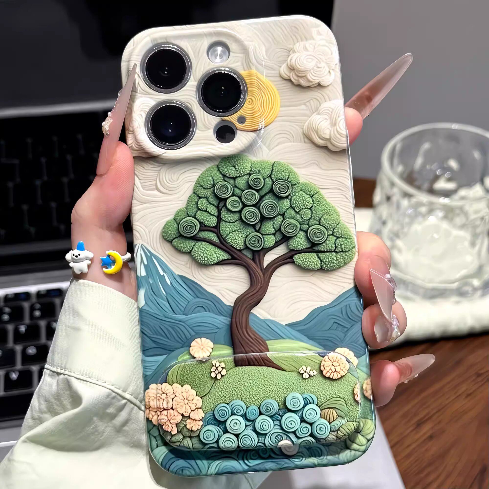 油画山树适用iPhone16promax手机壳苹果13菲林15华为p80复古vivos30小米17pro支架opporeno14红米k80荣耀500 - 啵啵啵工作室