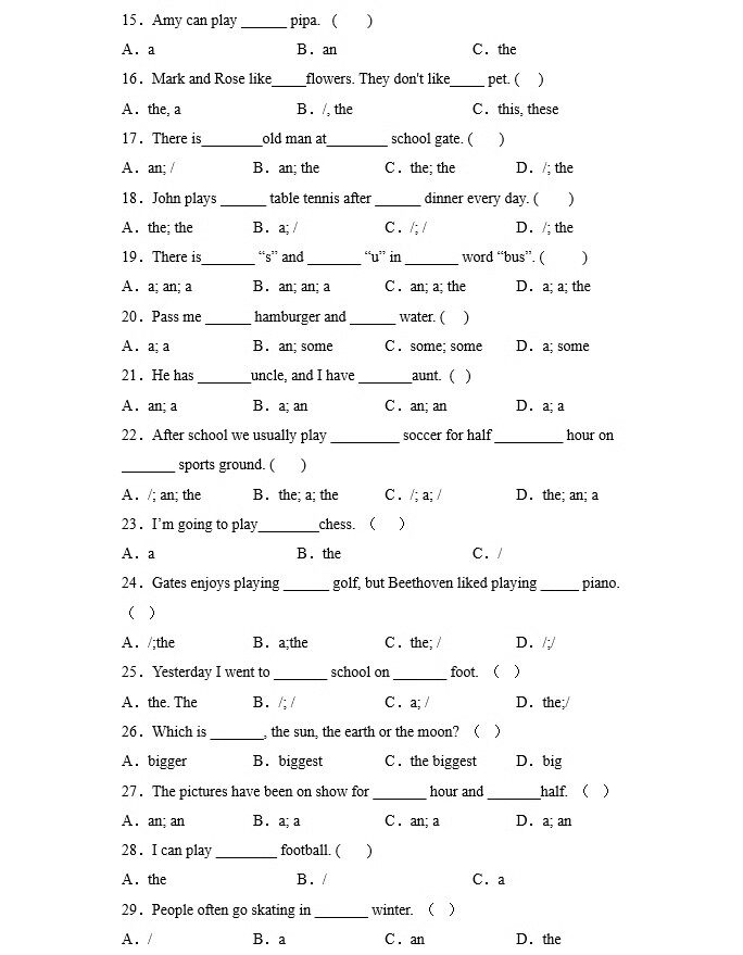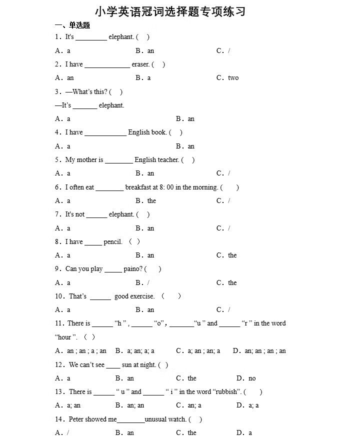您的位置:安康生态农业开发平台  >   >  小学英语三四五六年级冠词练习本选择题练习题不定零冠词专项训