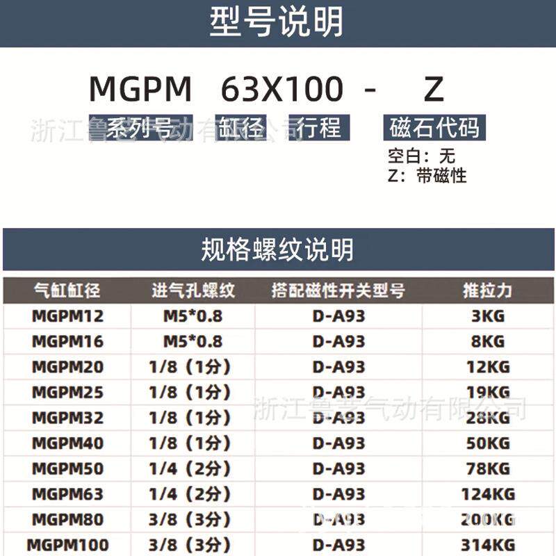 气缓冲三轴导杆气缸MGPL/MGPM16/20/25/32/50-100-150-200-300AZ - 钗钿金翠工厂店的小店5