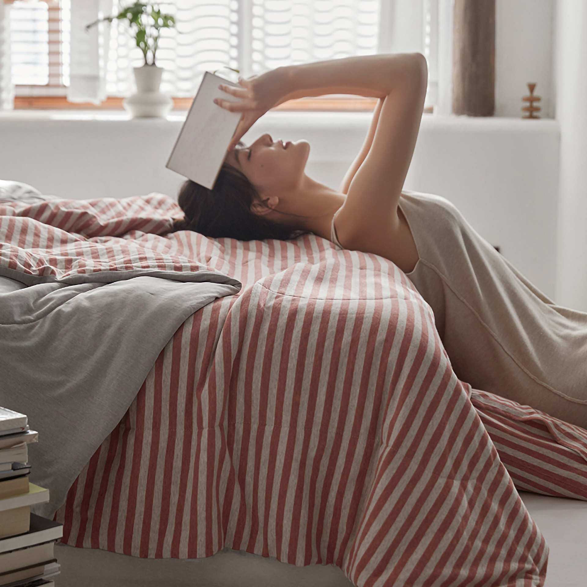 A类全棉夏被针织棉夏季空调被2026新款条纹夏凉被单双人夏天被子 - 夜柔家纺旗舰店