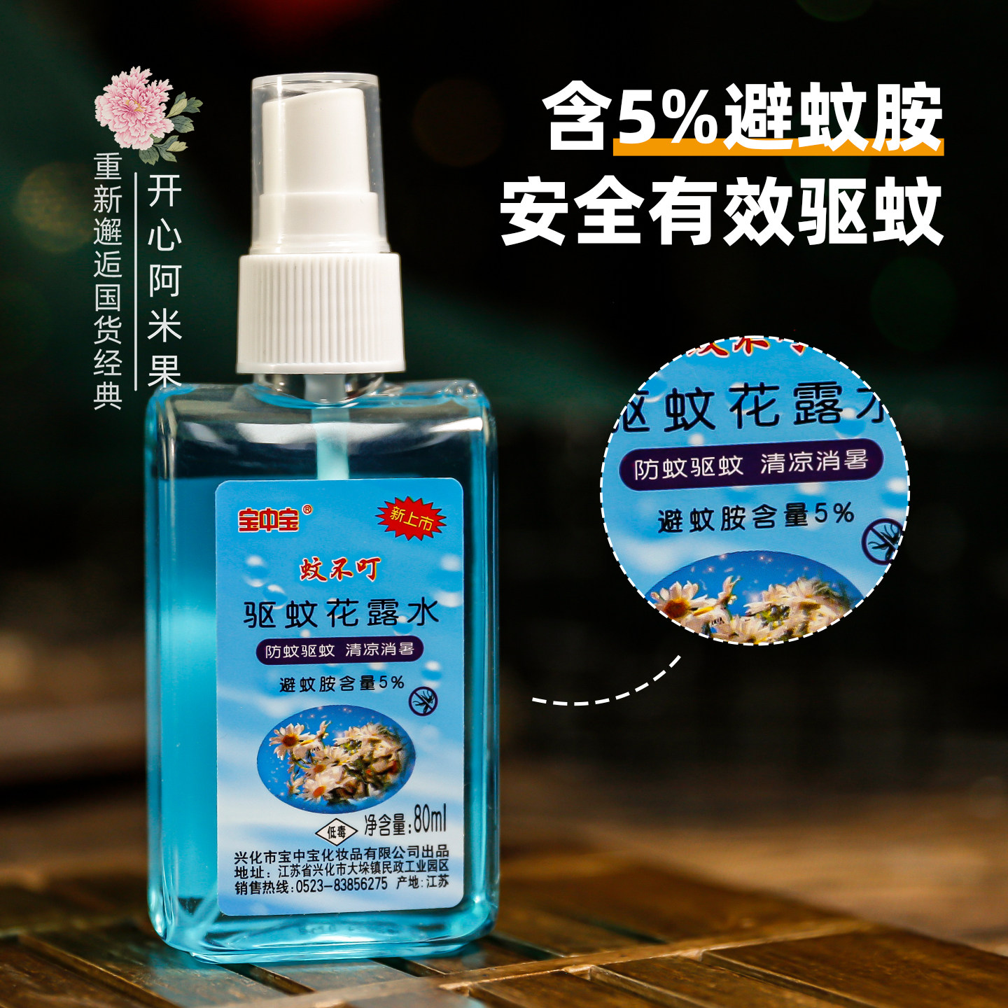 蚊不叮喷雾成人宝中宝驱蚊花露水 随身户外 防蚊虫液清凉消暑夏季 - 开心阿米果国货美妆