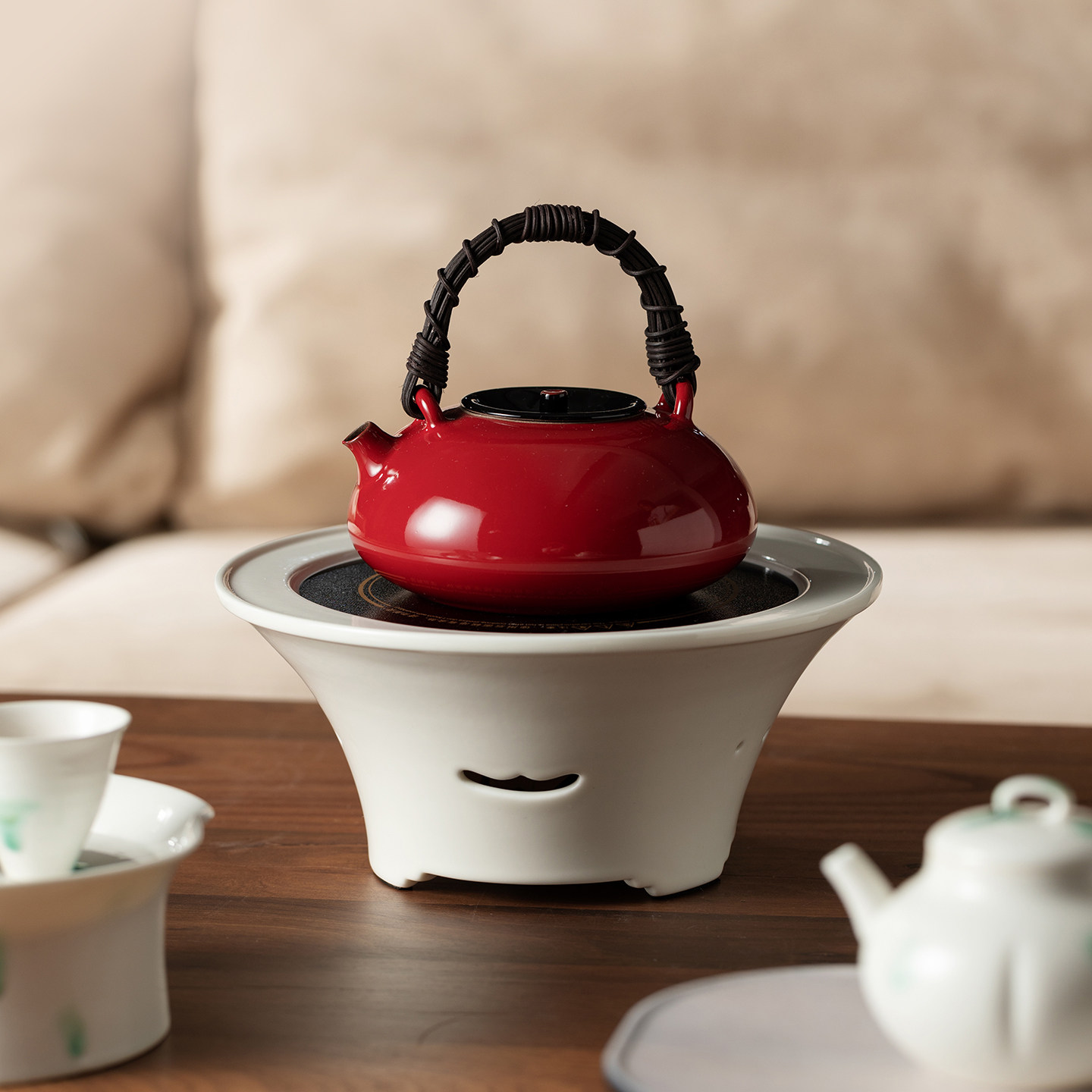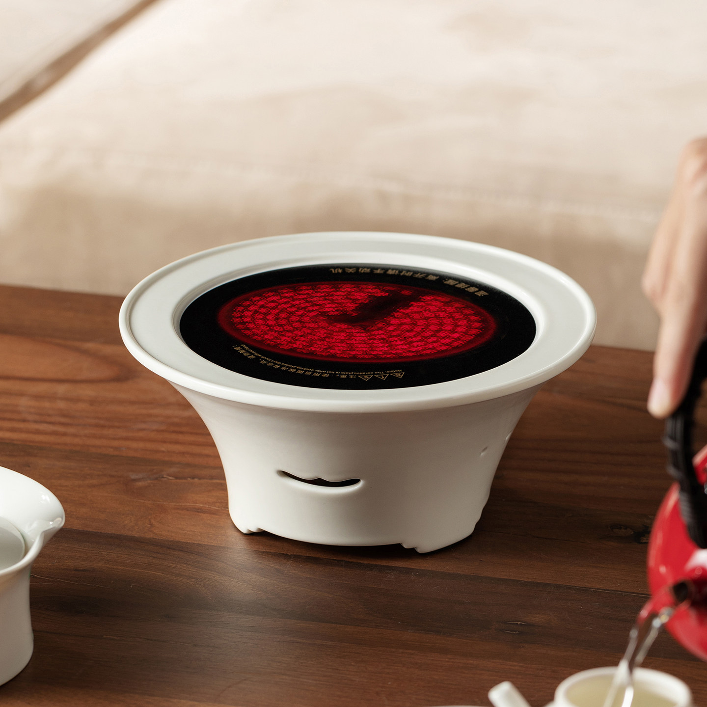 里作极简白电陶炉煮茶套装整套高端家用日式冰玉玻璃铜提梁烧水壶 - 里作旗舰店