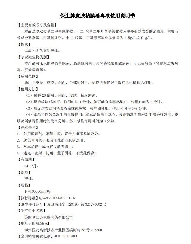 保生皮肤黏膜消毒液灭活病毒狂犬病毒官方旗舰店正品mf - 爱康四海大药房旗舰店