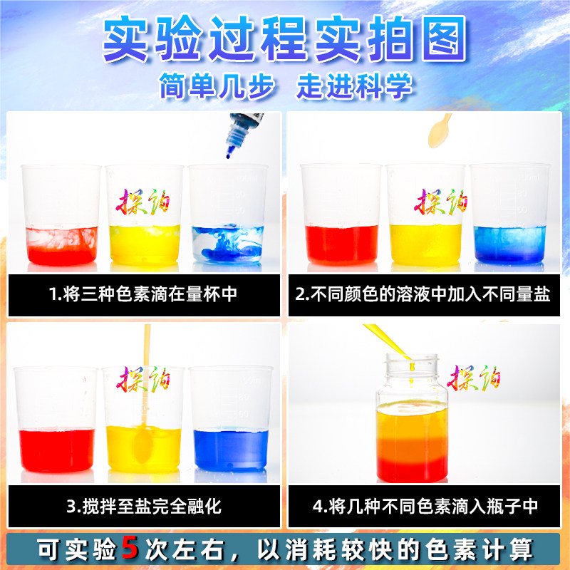 探询彩虹瓶密度分层趣味科学套装材料物理化幼儿园早教小实验七彩 - 探询实验室