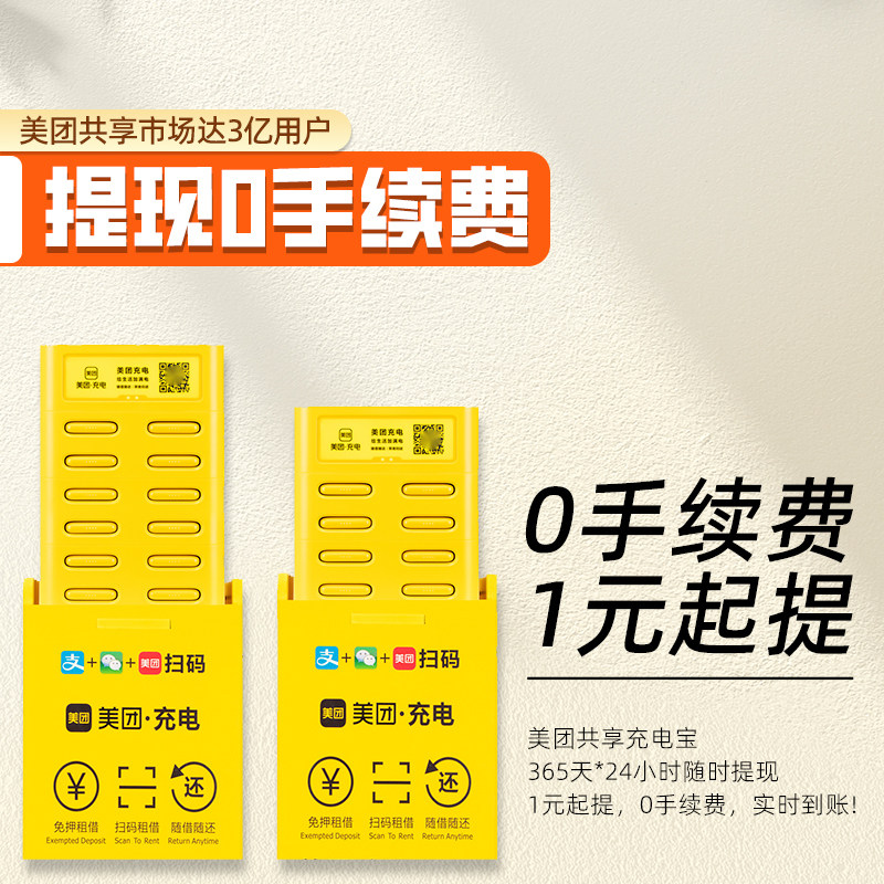 美团充电宝机柜设备商用扫码借用免押金租借100%分润全新机 - 共享充电宝设备合作招商