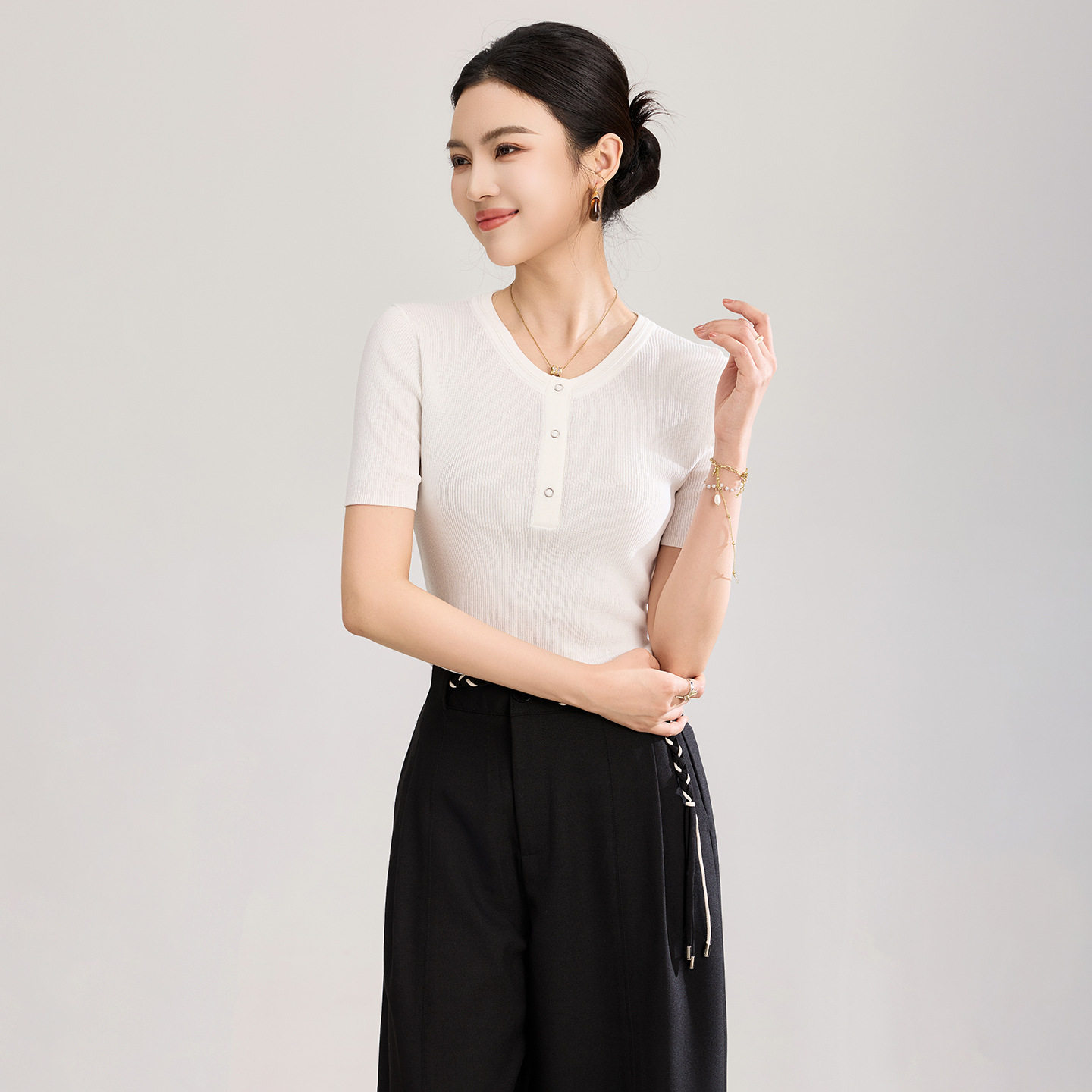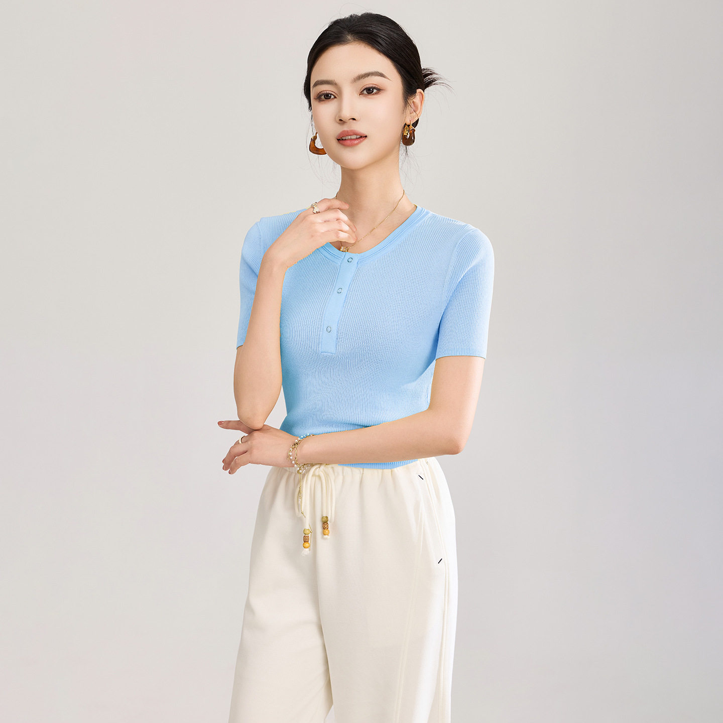您的位置:安康生态农业开发平台  >   >  16针四平密织超细双曲圈修身短袖针织衫女夏新款上装南油