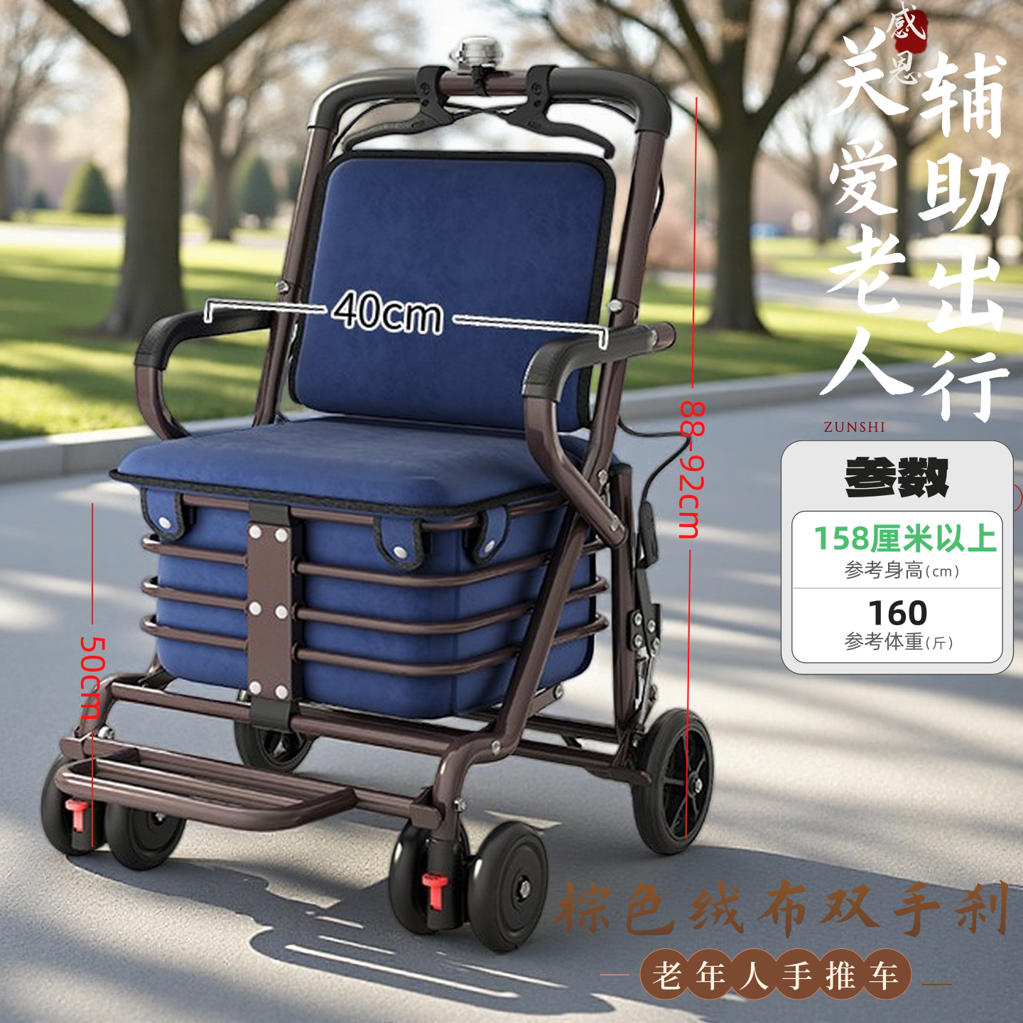 老年人手推代步车便携助行折叠座椅四轮老人手推车老年代步车推车 - 健洋家具旗妨店