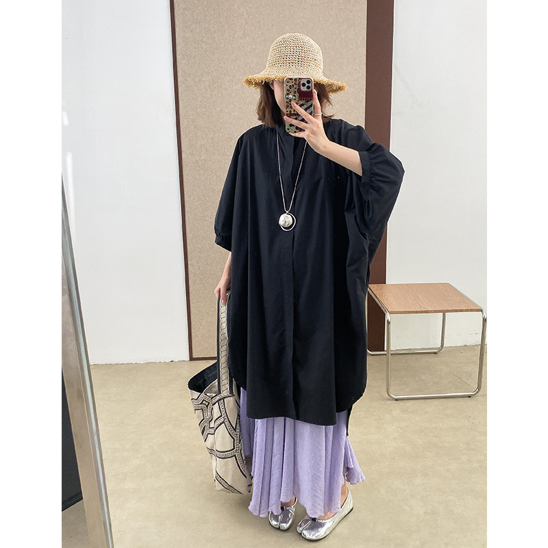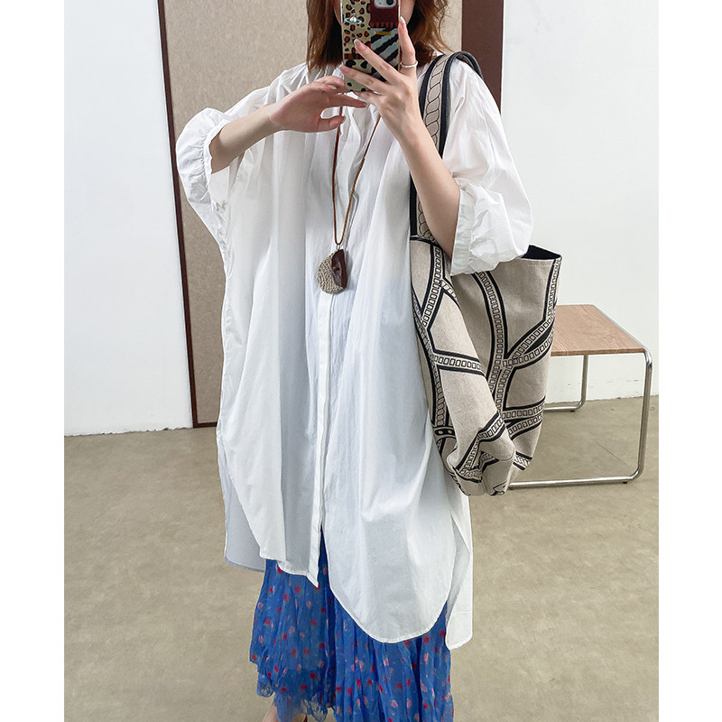 菲尔丹 面料巨舒服!港风高支精棉大廓形前短后衬衫裙长衬衫 0181 - 菲尔丹
