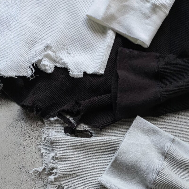 ANCELLM DAMAGE WAFFLE CREW LS 26SS 毛边破坏华夫格打底长袖T恤 - 東京杠杠 良久株式会社
