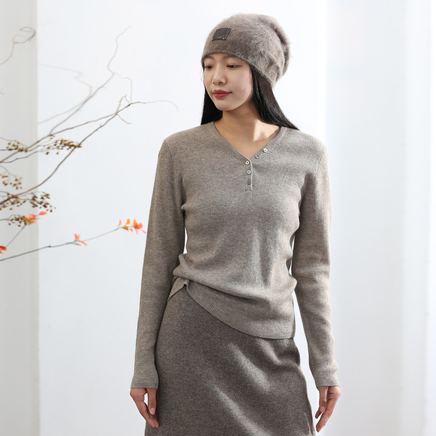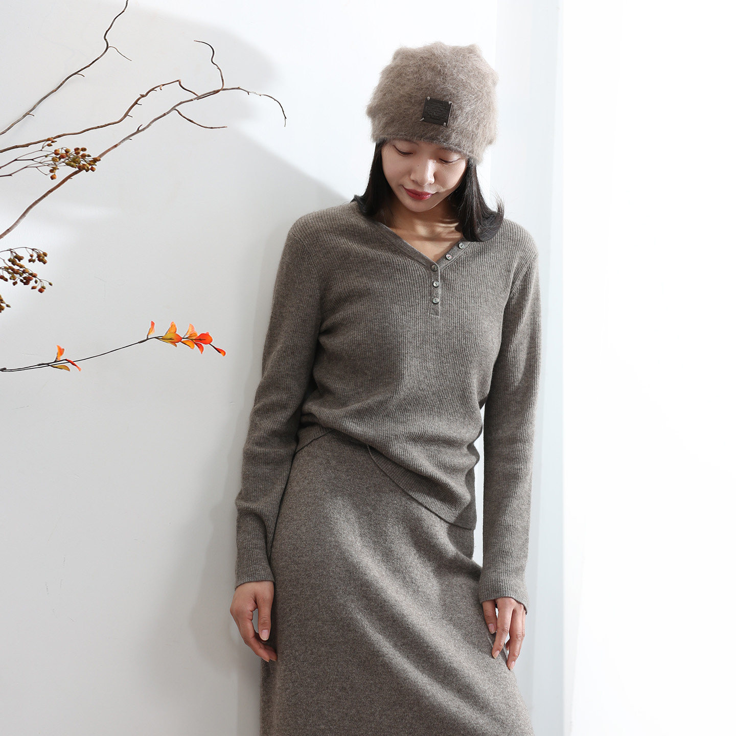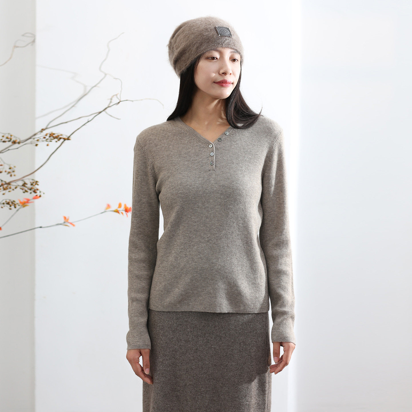 饮水鸟25春藏地34%牦牛绒羊毛V领柔软精纺细支针织女扣子长袖打底 - 饮水鸟非遗手创馆