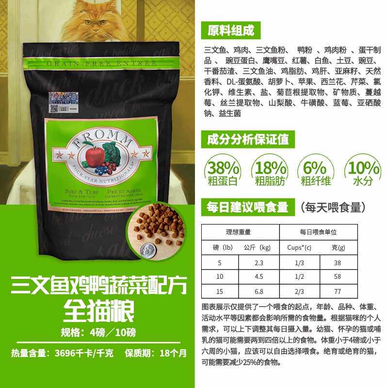 晟煜标Fromm福摩无谷三文鱼鸡鸭蔬菜全阶猫粮10LB软便克星绿福摩 - 嘟嘟小仓库