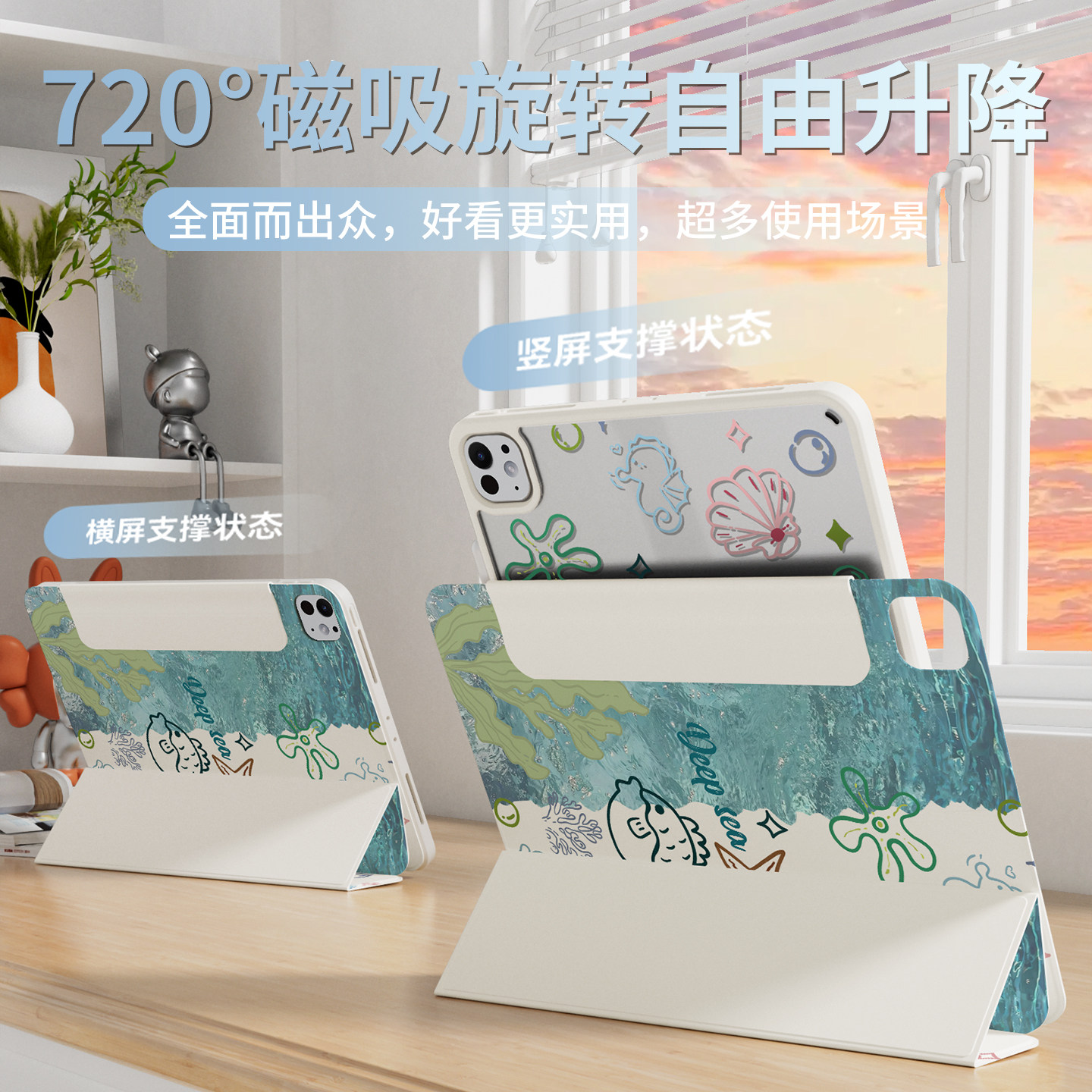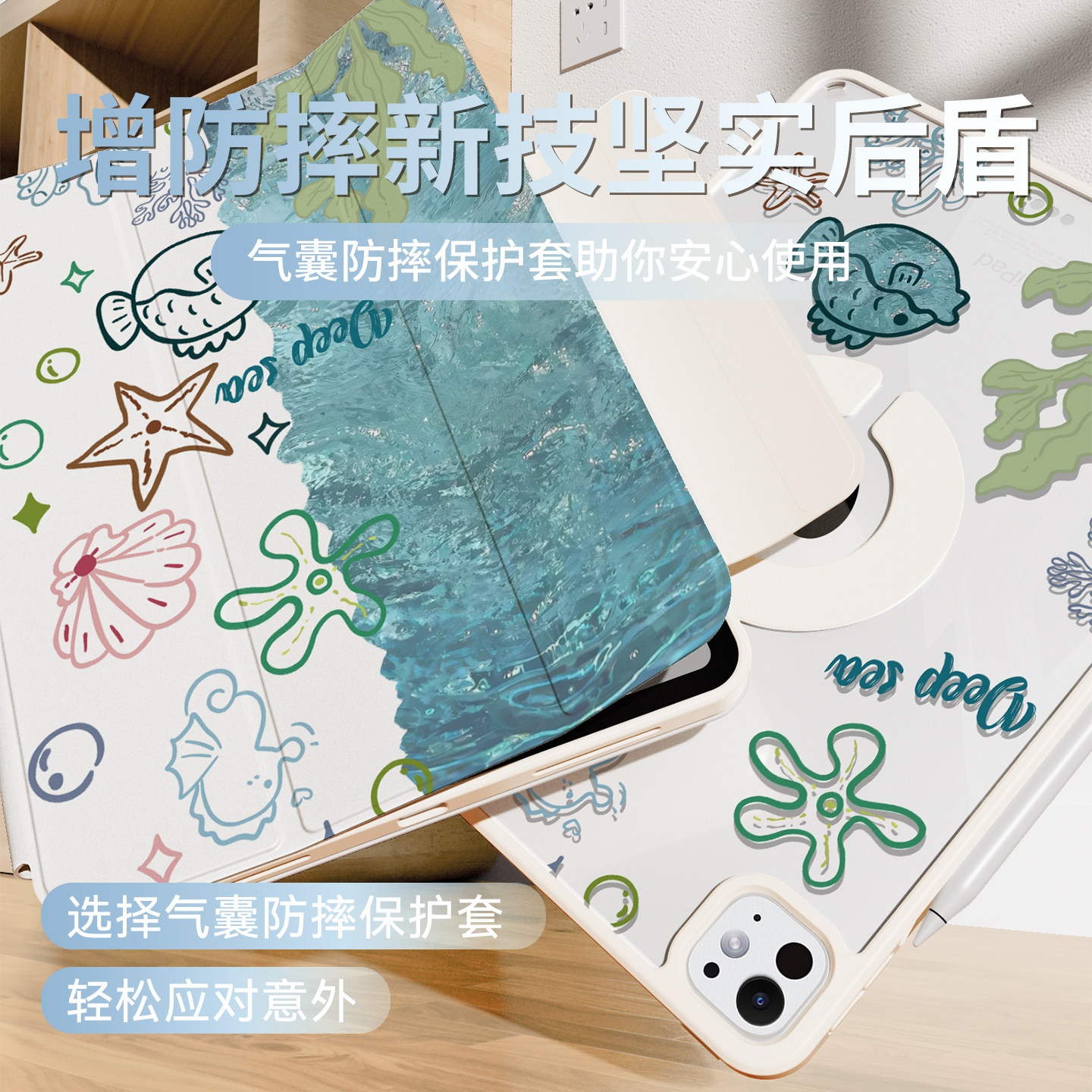 iPadpro保护壳iPad11代平板720°旋转支架iPad10磁吸拆分mini7苹果air7保护套透明air6Y型5轻薄4防摔13寸12.9 - 秉迪数码专营店