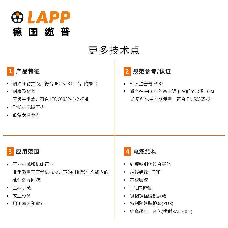 缆普LAPP电线电缆ÖLFLEX® CLASSIC FD 440 CP耐磨铜芯屏蔽软线 - 便民仓商贸城的小店