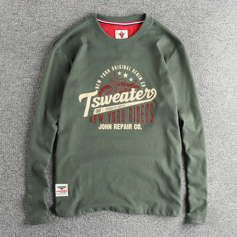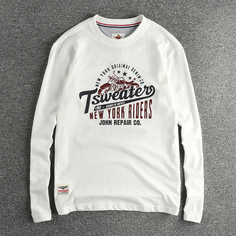 您的位置:安康生态农业开发平台  >   >  潮牌秋季新品280G水洗磨毛圆领长袖T恤男 机车图案复古内搭打底衫