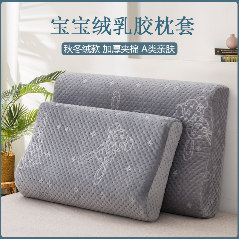 秋冬乳胶枕套加厚加绒夹棉儿童50x30枕套60x40单人记忆棉枕芯套 - 稻草客母婴