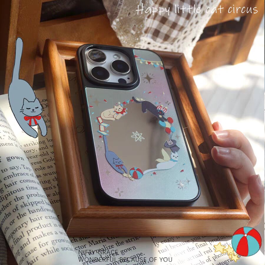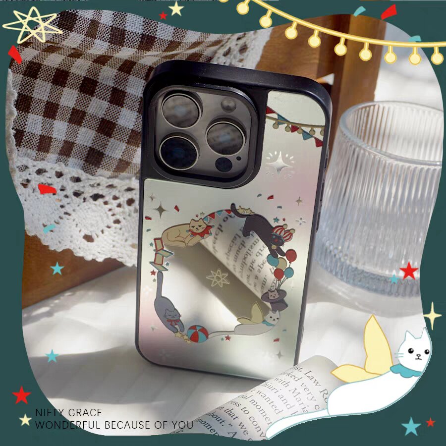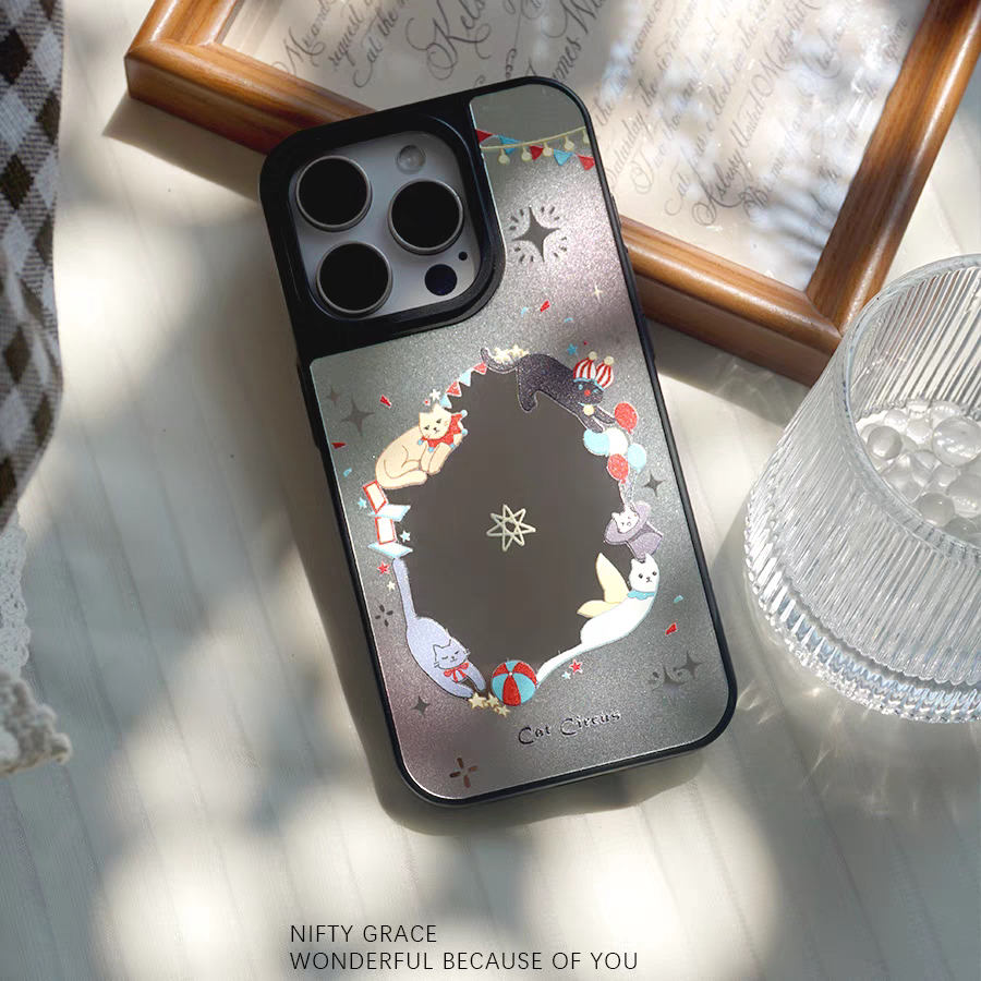 猫咪马戏团镜面适用于苹果16promax手机壳iphone16/15/14/13/12/11新品高级感全包防摔小众磁吸15plus玻璃壳 - 原创壳先生