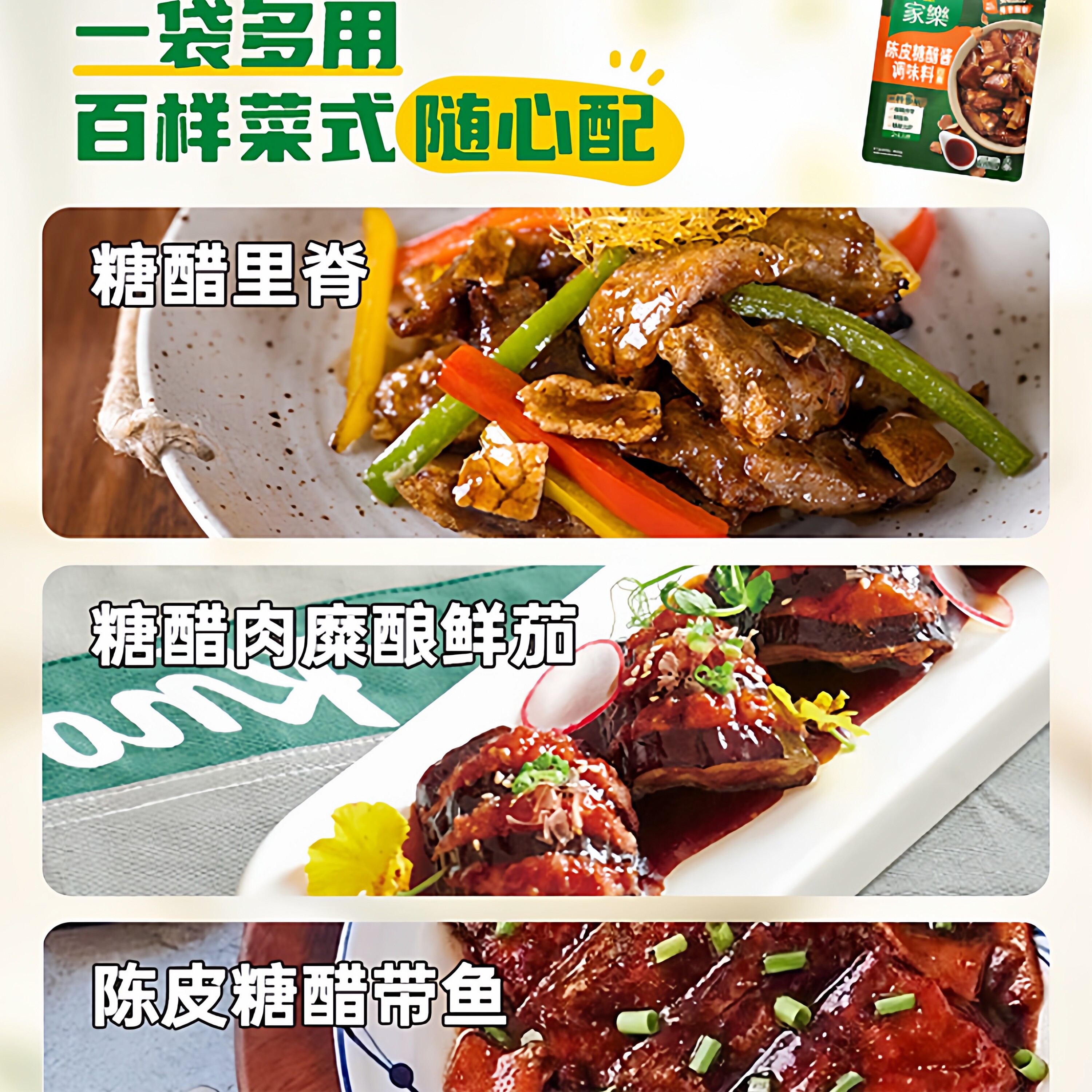 家乐陈皮糖醋酱调料包糖醋汁糖醋排骨里脊鱼酱汁家用私厨酱138g*3 - 家乐食品旗舰店