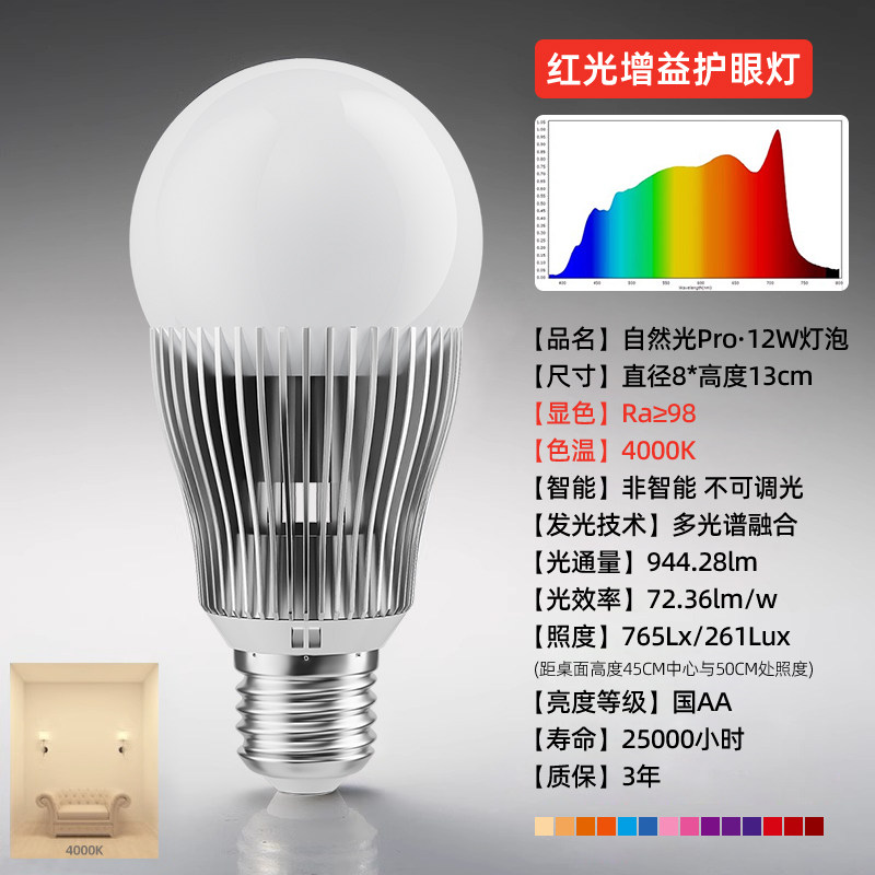 振牛全光谱灯泡低蓝光学习阅读专用e27螺口儿童护眼led节能灯泡 - 振牛照明旗舰店