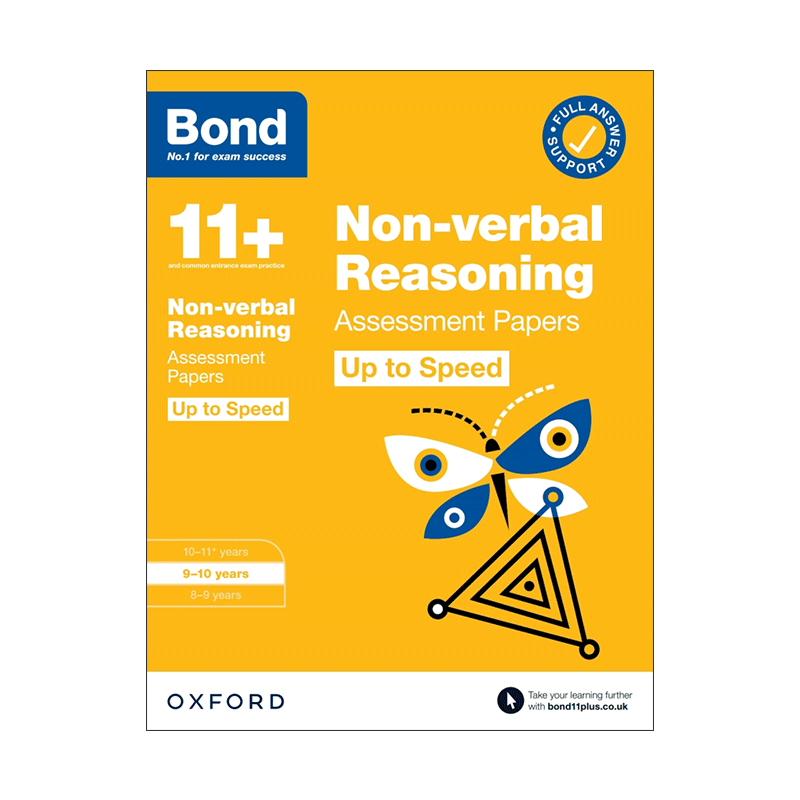 英文原版 Bond 11+ Non-verbal Reasoning Up to Speed Assessment Papers with Answer Support 9-10 Years 牛津邦德英国小升初 - 大成文汇图书专营店