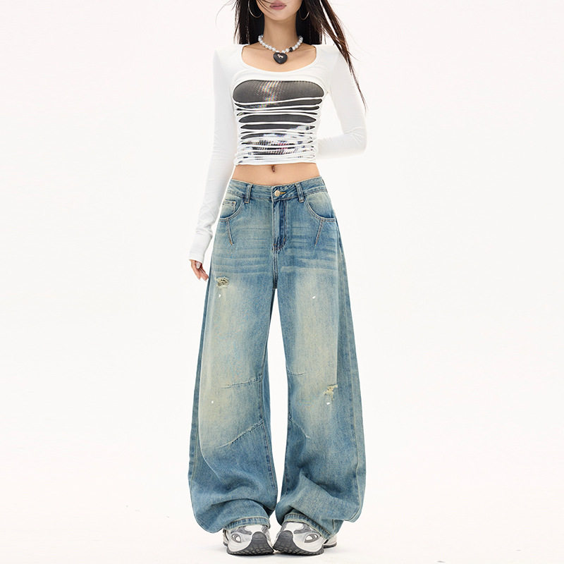 您的位置:安康生态农业开发平台  >   >  胖mm2026春装新款阔腿裤女装牛仔裤弯刀裤复古怀旧蓝牛仔长裤,加