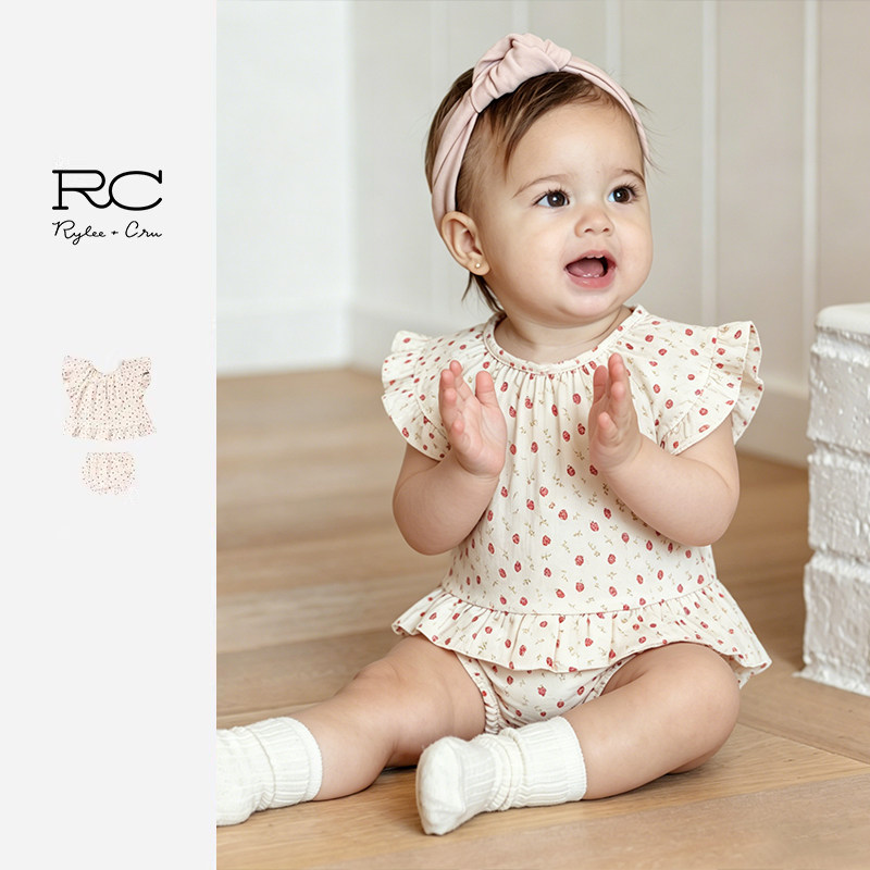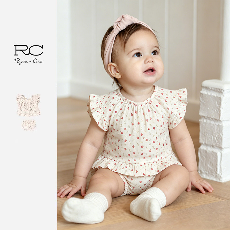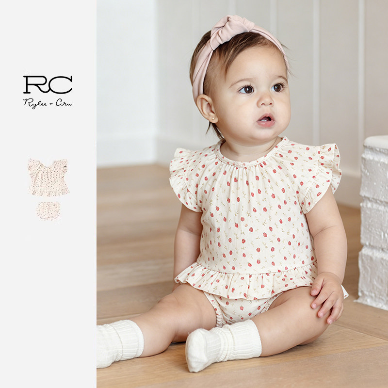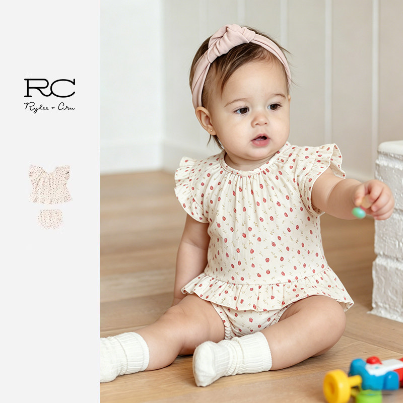 RyleeCru女童上衣短袖裤子小草莓可爱两件套装婴小童外出套装 - ryleecru旗舰店