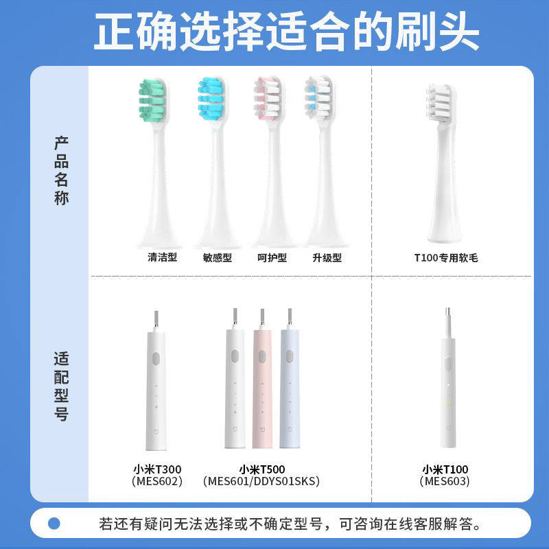 适配小米电动牙刷头T300/T500米家通用T100/MES601/602/603替换头 - 笑道个人护理