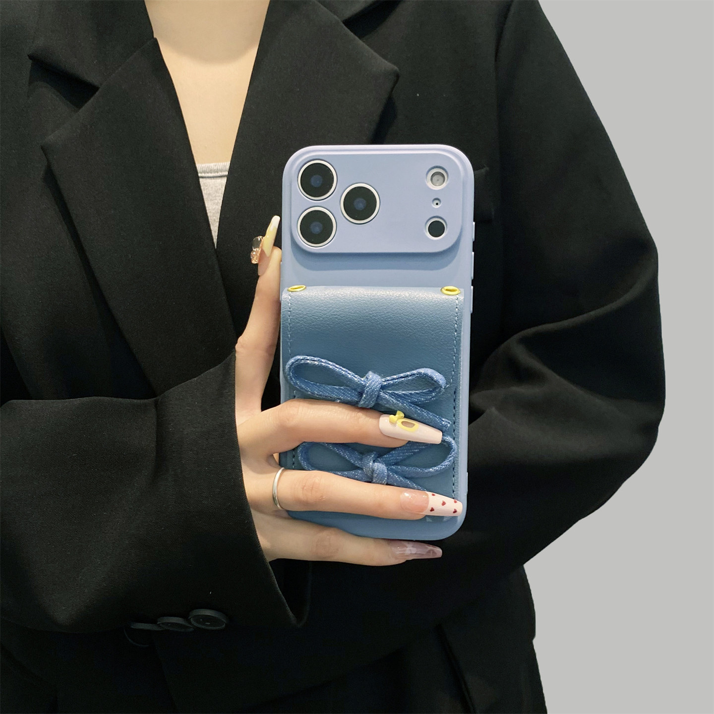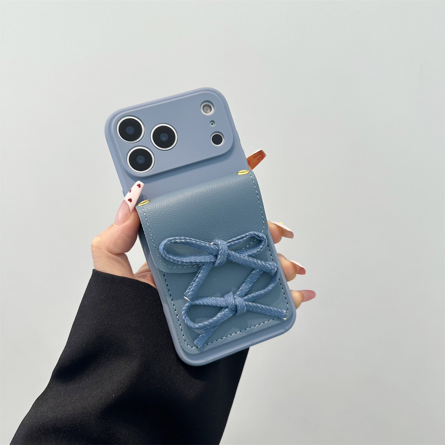 ins蓝色蝴蝶结卡包适用苹果17pro手机壳16ProMax新款iPhone16斜跨挂绳14软15Promax全包13pro创意11/12保护套 - 韩夏福瑞杰专卖店