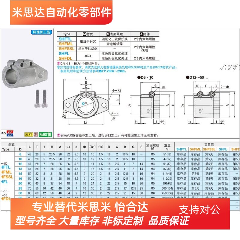 菱形导向轴支座光轴铝支架SHFTL8/10/12/15/16/20/25/30/35/40/50 - 米思达自动化零部件