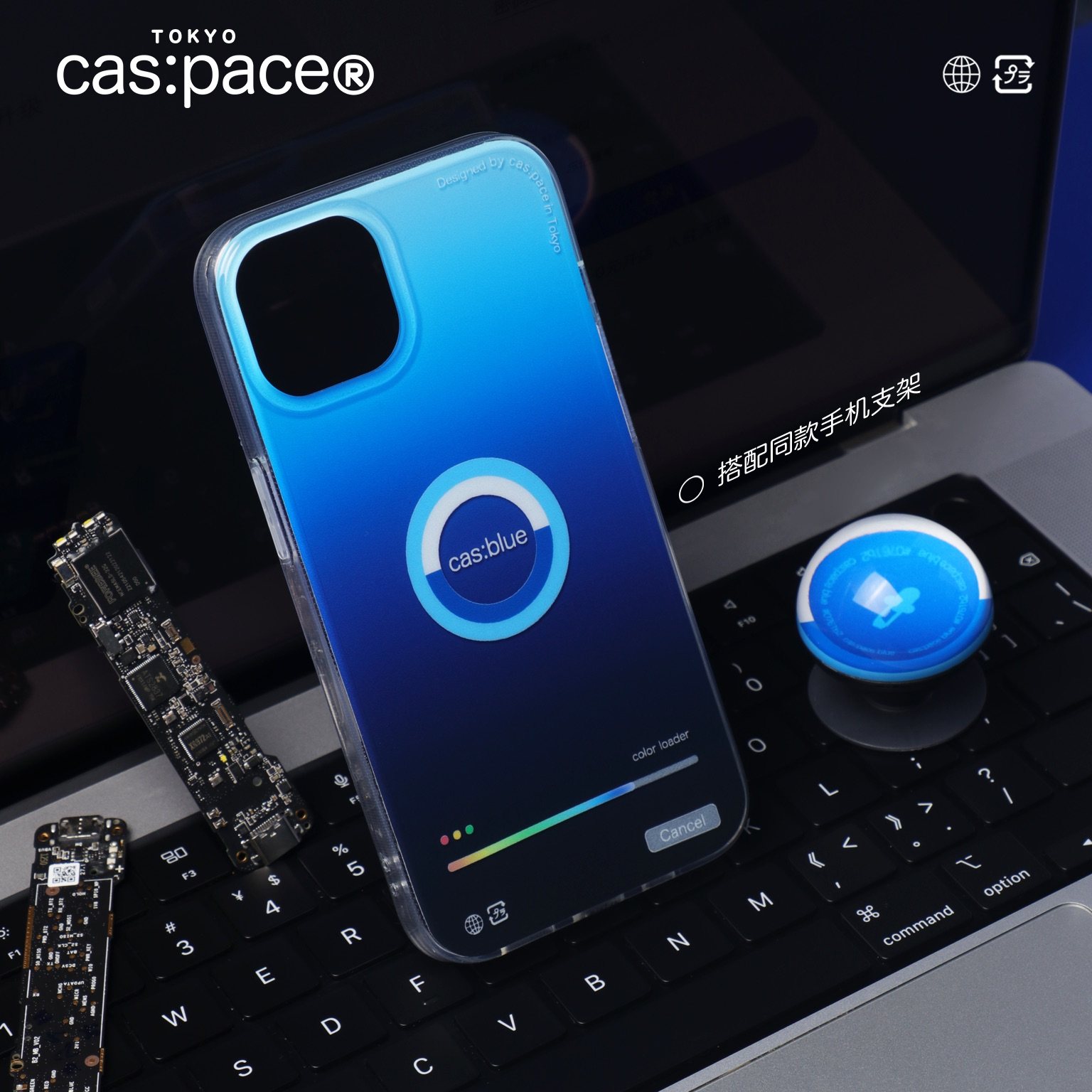 壳空间原创蓝色取色器适用苹果15iPhone14promax双层印花手机壳12新款13全包防摔磨砂个性时尚高级带支架小众 - cas:pace 殼空間