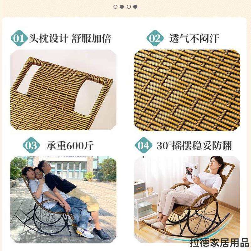 懒人摇摇椅家用大人逍遥椅躺椅午休老人乘凉折叠藤椅阳台休闲椅子 - 明空云甄选店的小店24
