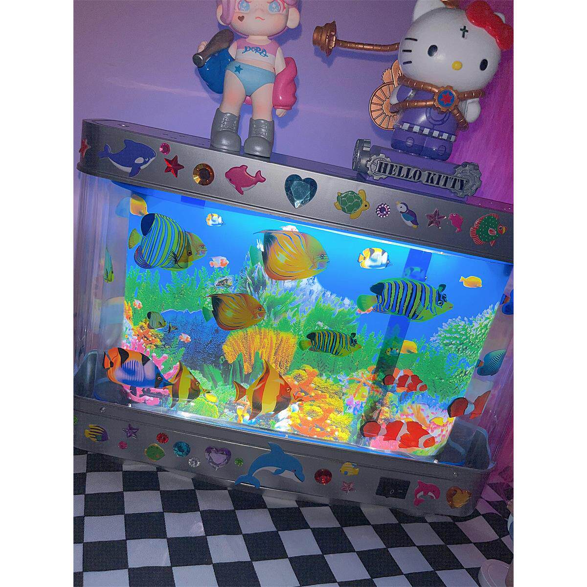 亚比亚文化Y2K古早LED造景迷你水族馆INS装饰灯台灯仿真鱼缸 - 奕嗨詹乔专卖店