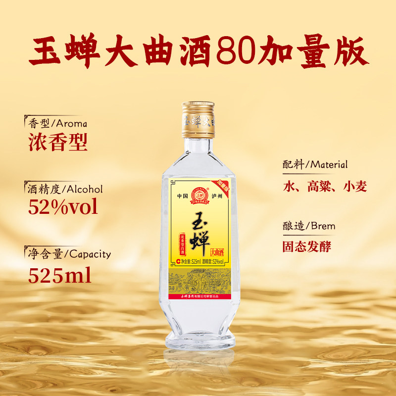 【口粮推荐】玉蝉老酒玉蝉大曲酒80加量版52度浓香型白酒1瓶525ml - 玉蝉老酒旗舰店