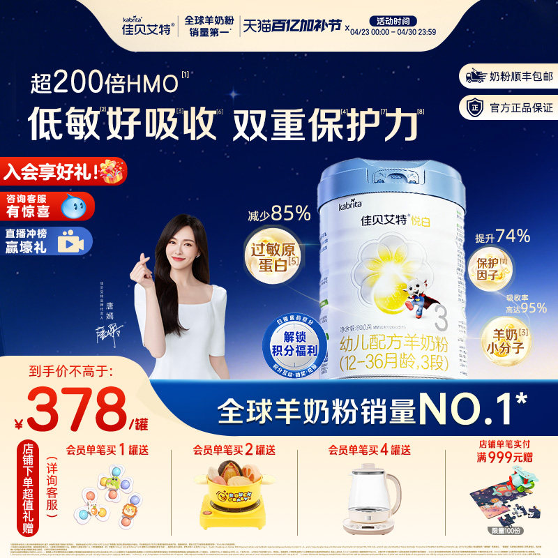 【新品】佳贝艾特幼儿羊奶粉 铂晶悦白3段806g*1罐 12-36个月 - kabrita官方旗舰店