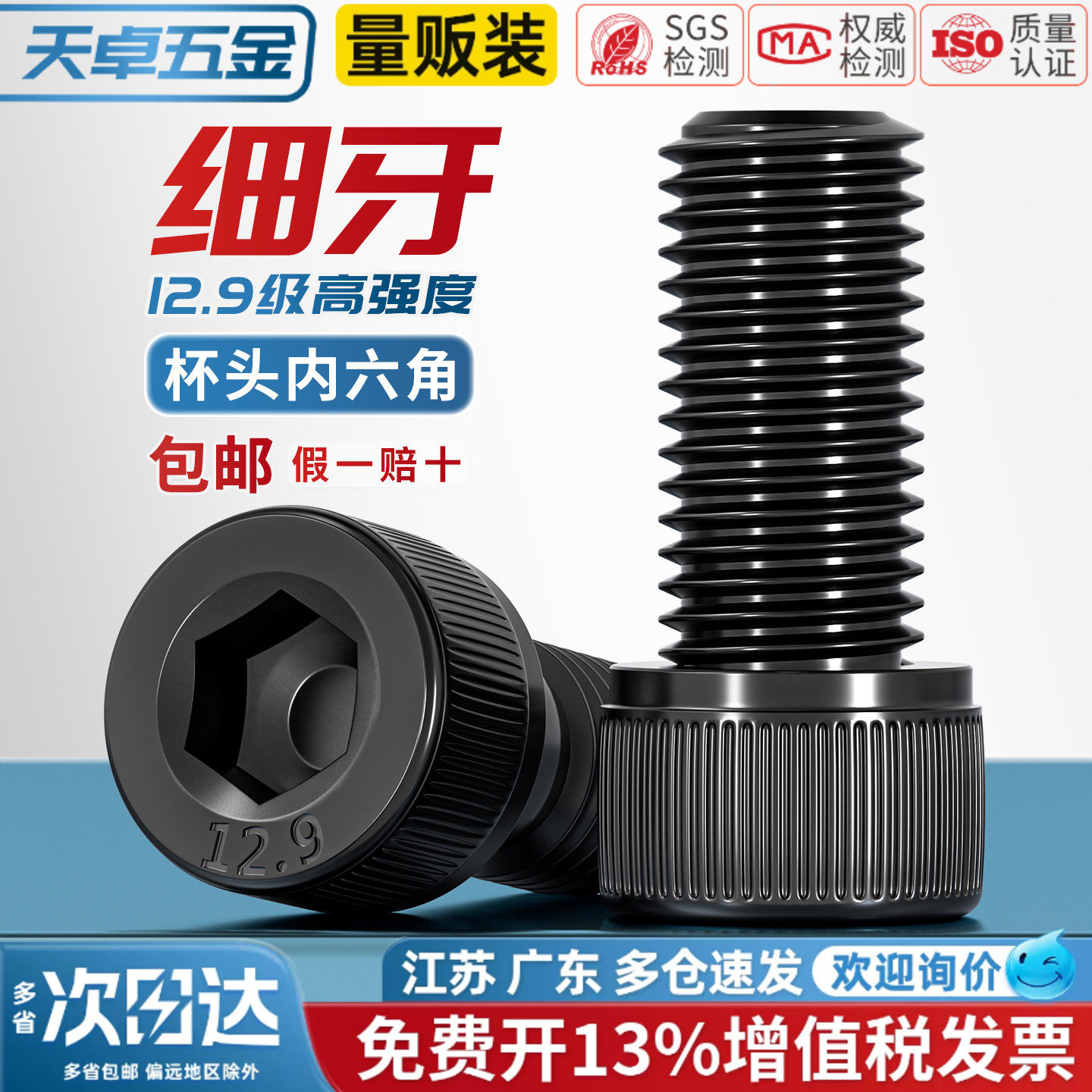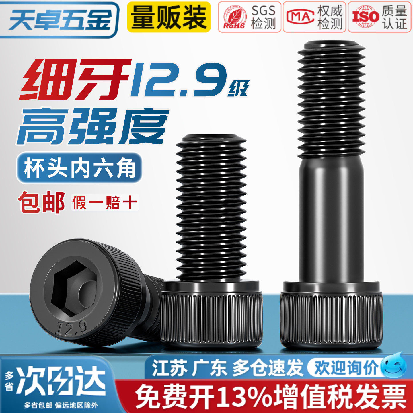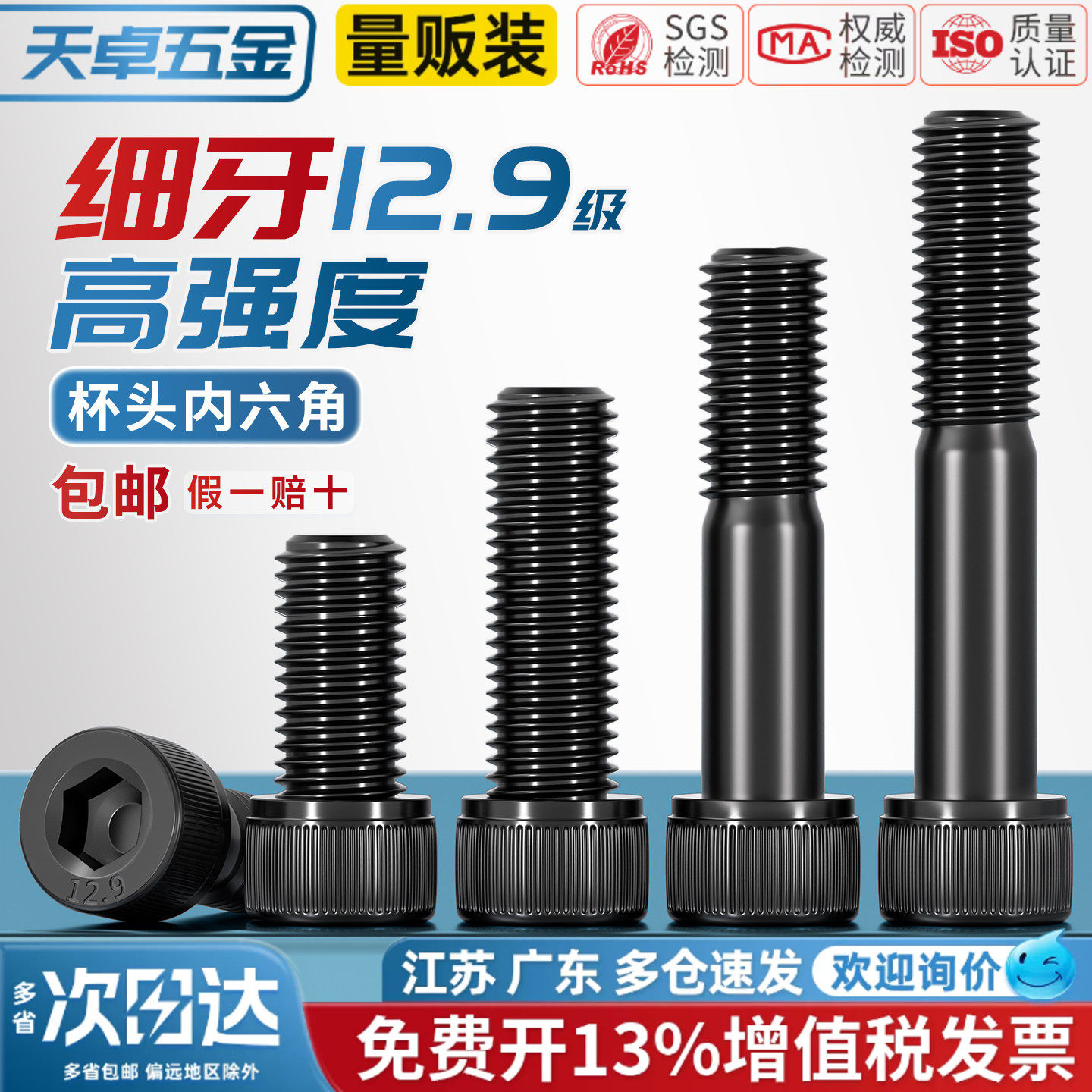12.9级细牙内六角螺丝螺栓MM6M8M10M12M14M16M20*0.75*1*1.25*1.5 - 天卓五金官方旗舰店