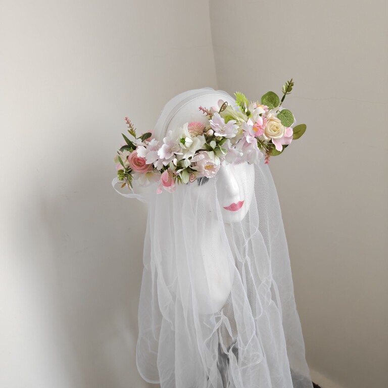 ins森系手工白色花朵清新百搭花环新娘韩版户外婚礼甜美公主头饰 - 韩粉饰茜原创手工制作发饰