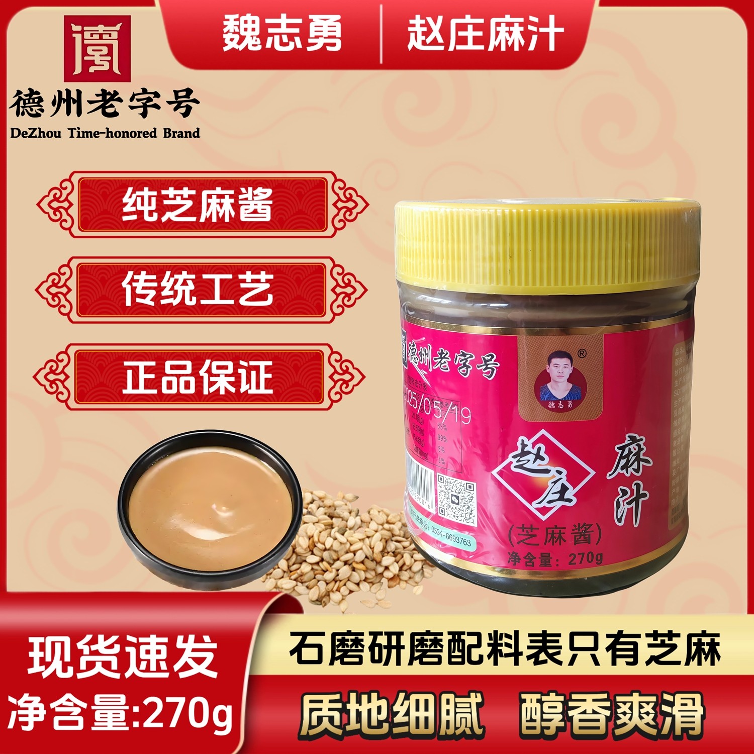 家用芝麻酱调味料赵庄麻汁纯芝麻酱无添加凉拌火锅蘸料纯正宗小磨 - 盛创食品馋嘴小食坊