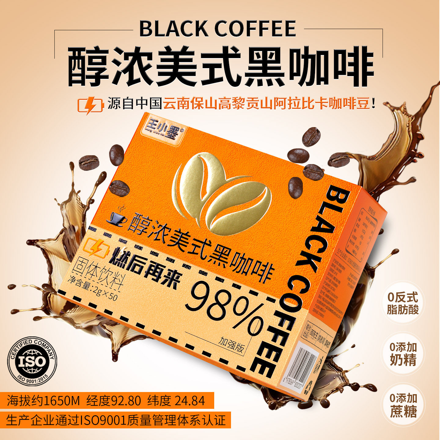 美式速溶黑咖啡0蔗糖0反式脂肪云南小粒咖啡粉健身学生纯黑咖啡 - 王小墨旗舰店