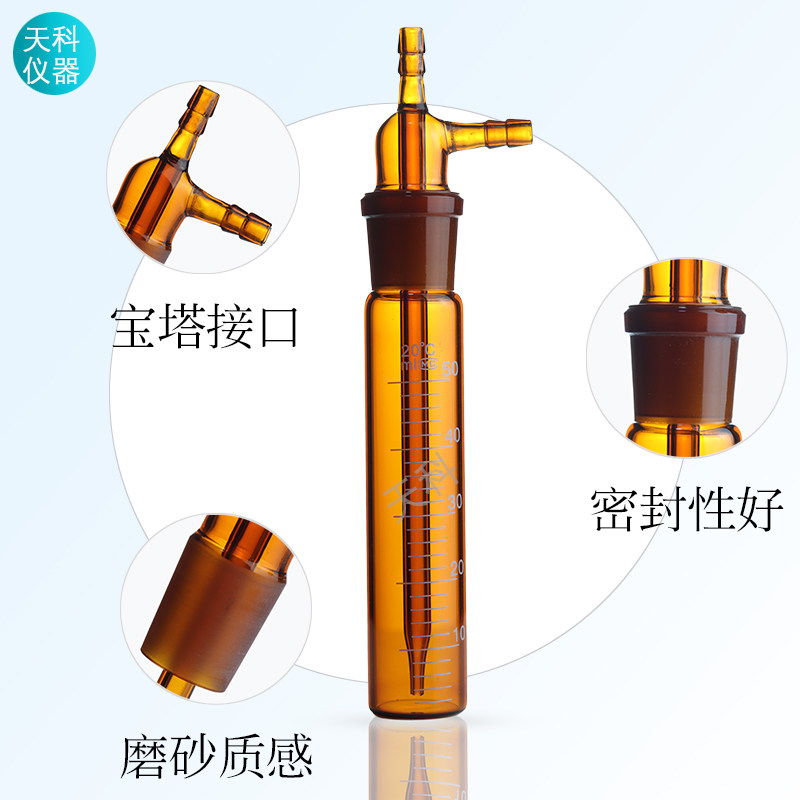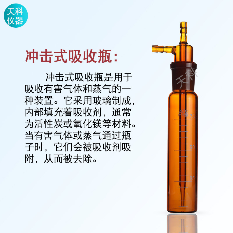 大型冲击式吸收瓶50/75/125/250ml白色棕色直形冲击氏吸收管采样 - 天科实验玻璃仪器厂