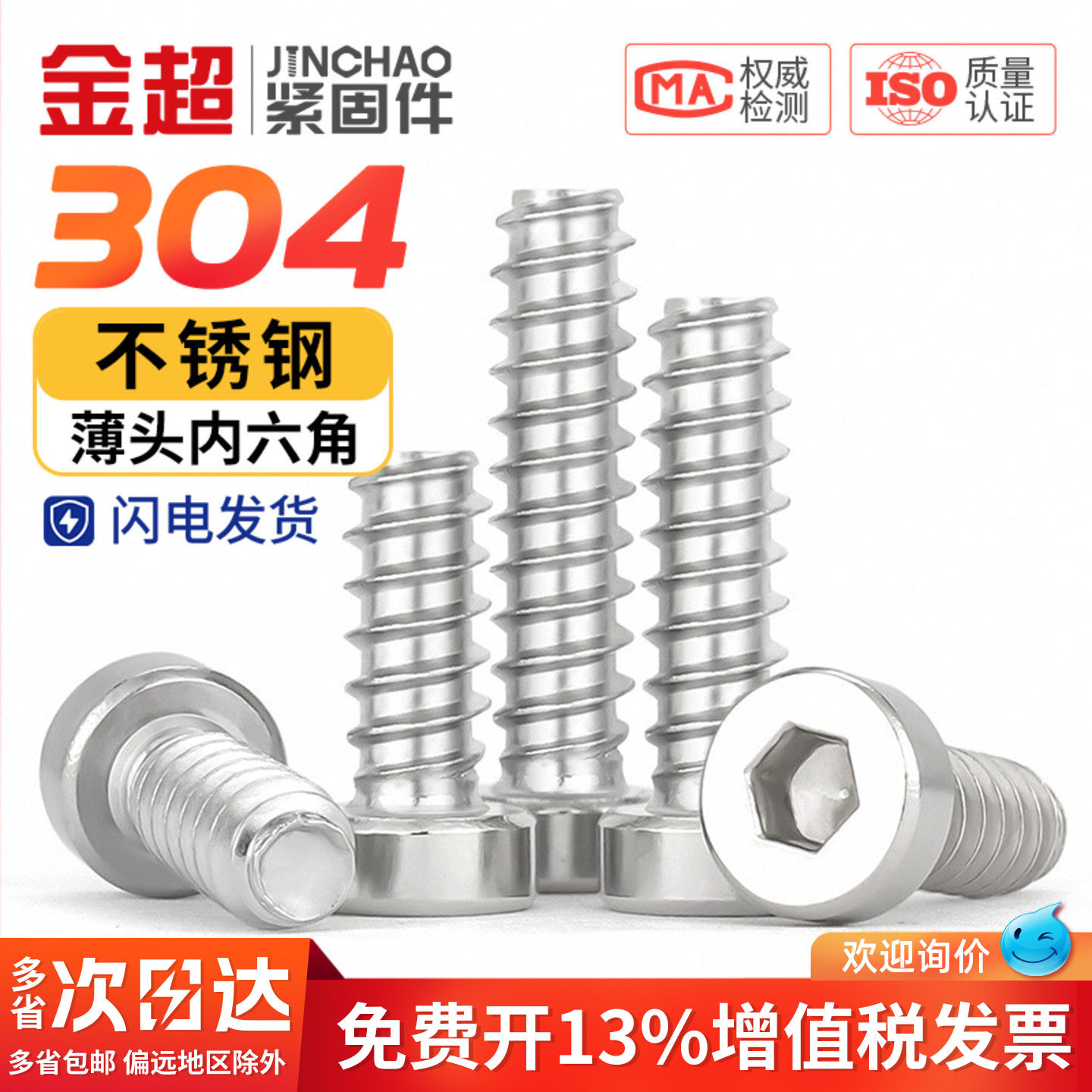 金超304不锈钢薄头圆柱头内六角平尾自攻螺丝薄杯头螺钉M3M4M5M6 - 金超官方旗舰店