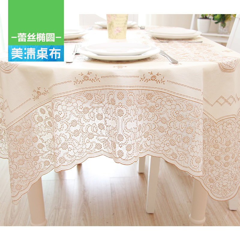 欧式椭圆桌桌布椭圆形桌垫PVC塑料桌布椭圆餐桌台布防水塑料蕾丝 - 湖泊发香社