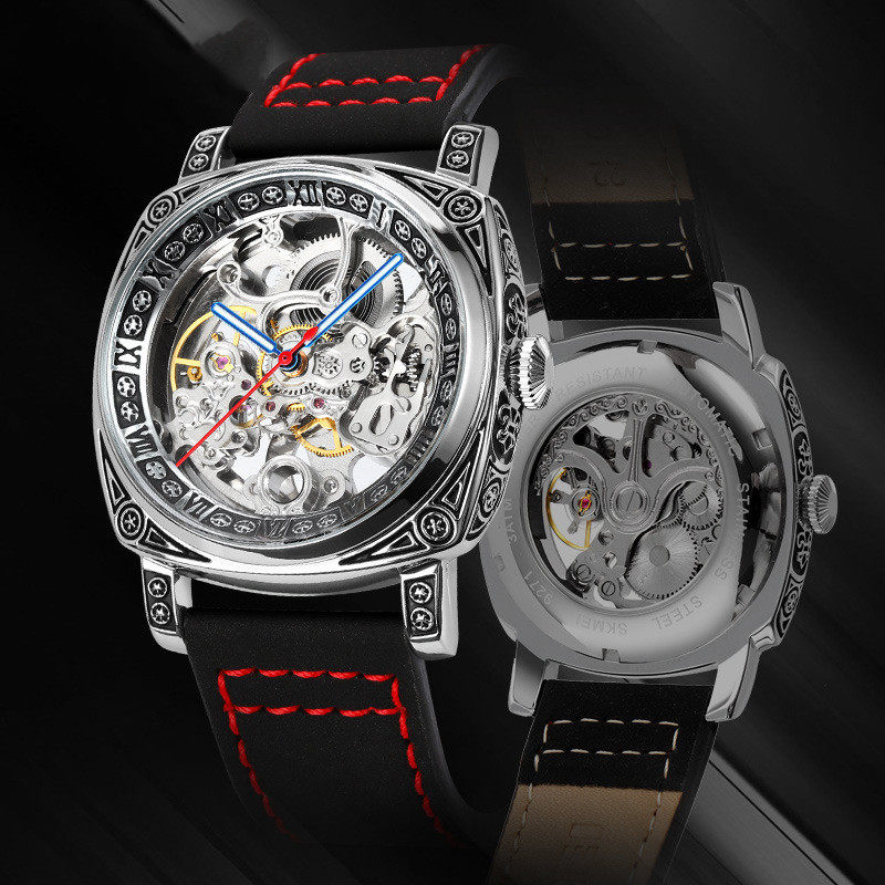 陀飞轮时尚镂空雕花全自动机械表个性男表真皮带防水休闲男士手表 - 小木鱼Table rows